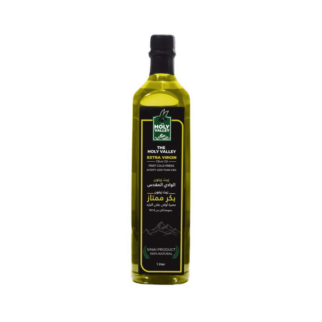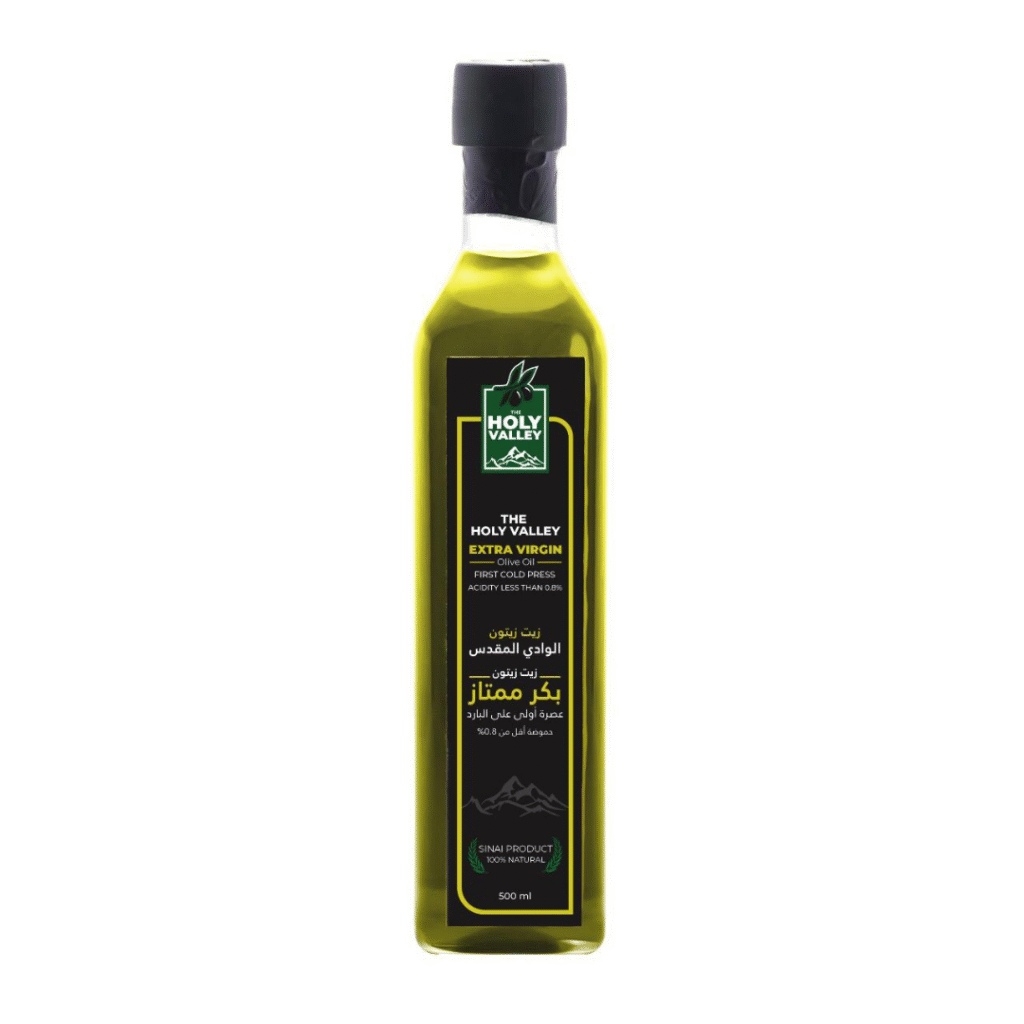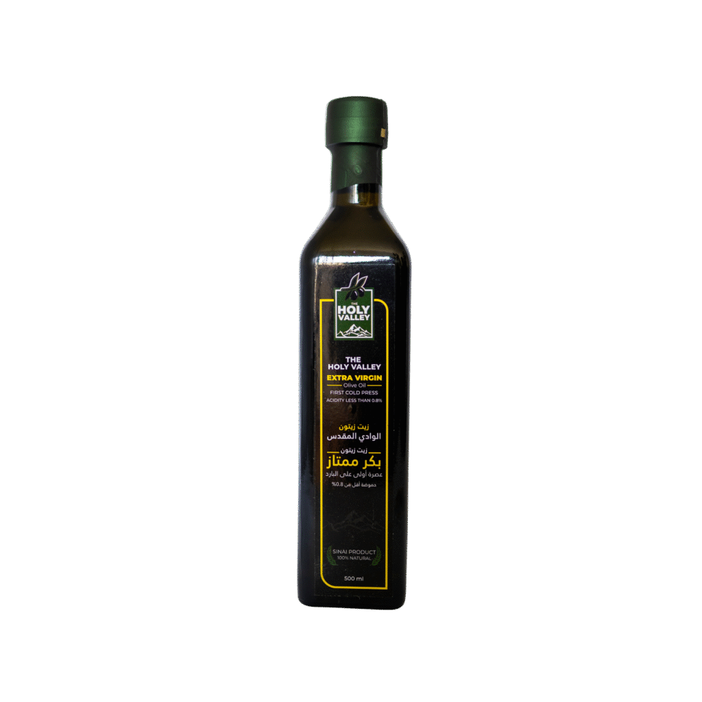 زيت زيتون الوادي المقدس ناتج عن عصر أجود أنواع الزيتون الطازجة والمنتقاة بعناية بالغة وبطريقة يدوية من خيرة مزارع سيناء.